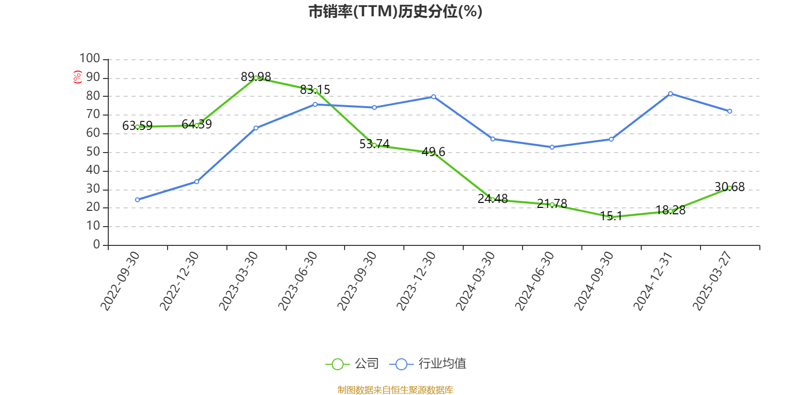 市盈率、市净率为负时,不显示当期分位数,会导致折线图中断。