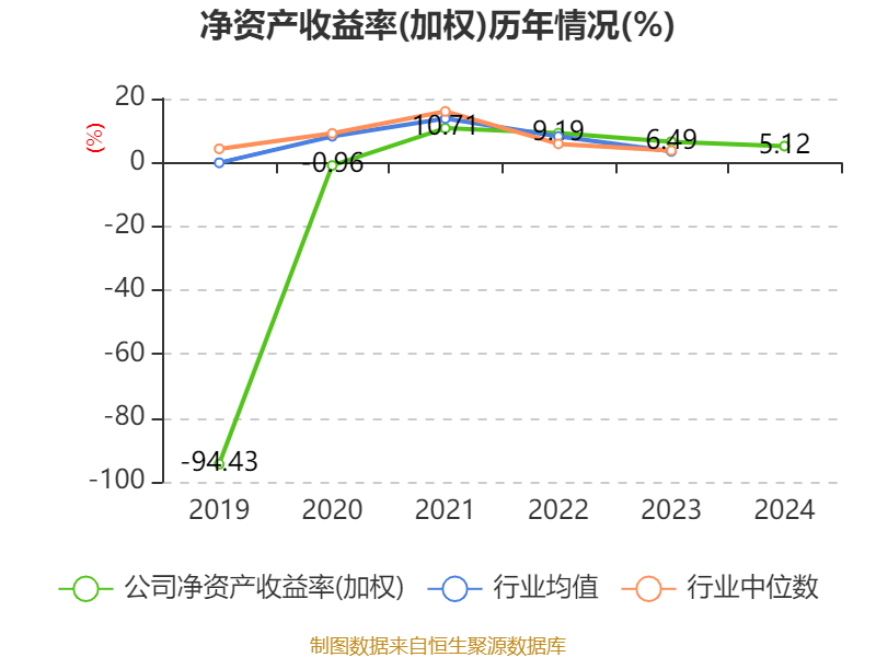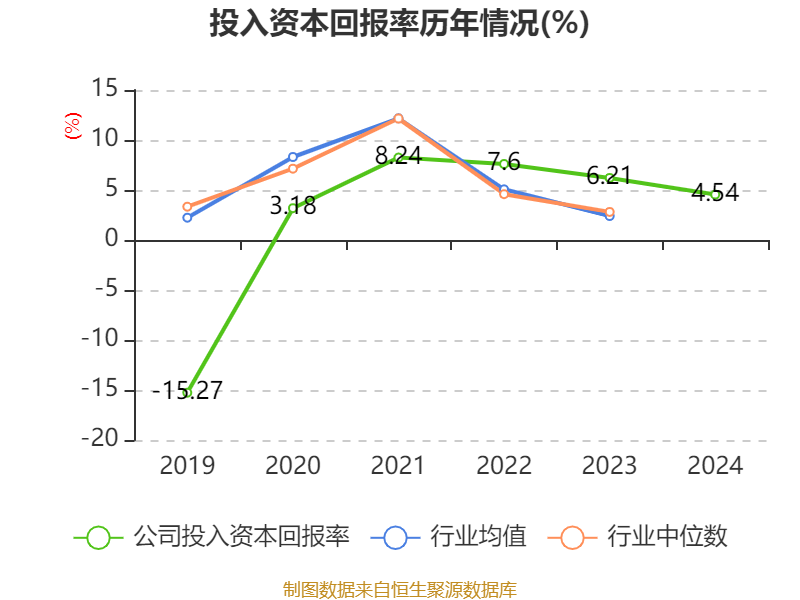 数据显示,2024年公司加权平均净资产收益率为5.12%,较上年同期下降1.37个百分点。公司2024年投入资本回报率为4.54%,较上年同期下降1.67个百分点。