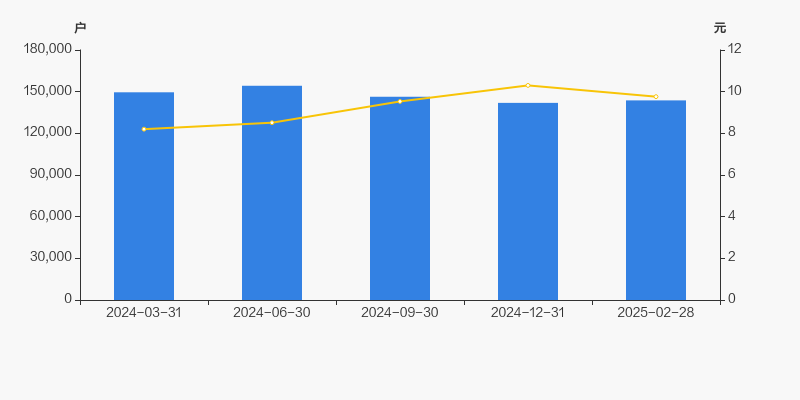 截至2025年2月28日,公司最新A股总股本为162.79亿股,其中流通股本为117.47亿股。户均持有流通股数量由上期的8.28万股下降至8.17万股,户均流通市值79.78万元。