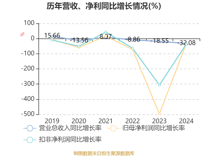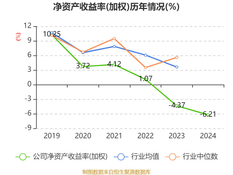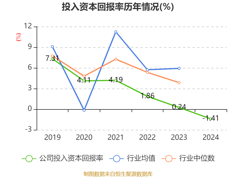 数据显示,2024年公司加权平均净资产收益率为-6.21%,较上年同期下降1.84个百分点。公司2024年投入资本回报率为-1.41%,较上年同期下降1.65个百分点。