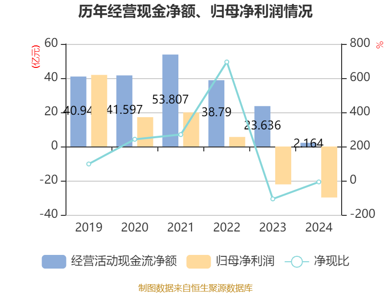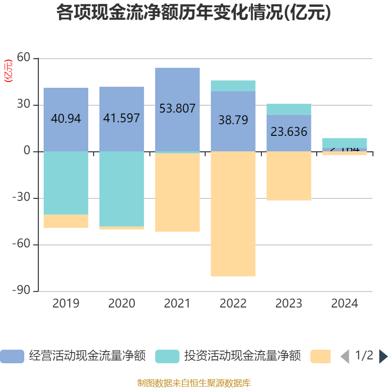 截至2024年,公司经营活动现金流净额为2.16亿元,同比下降90.85%;筹资活动现金流净额-2.43亿元,同比增加29.23亿元;投资活动现金流净额6.31亿元,上年同期为7.01亿元。