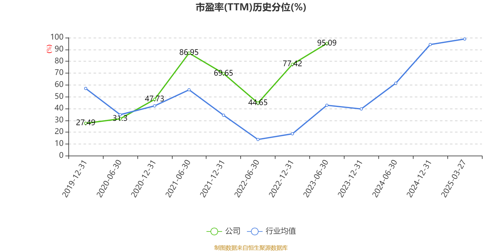 市盈率、市净率为负时,不显示当期分位数,会导致折线图中断。