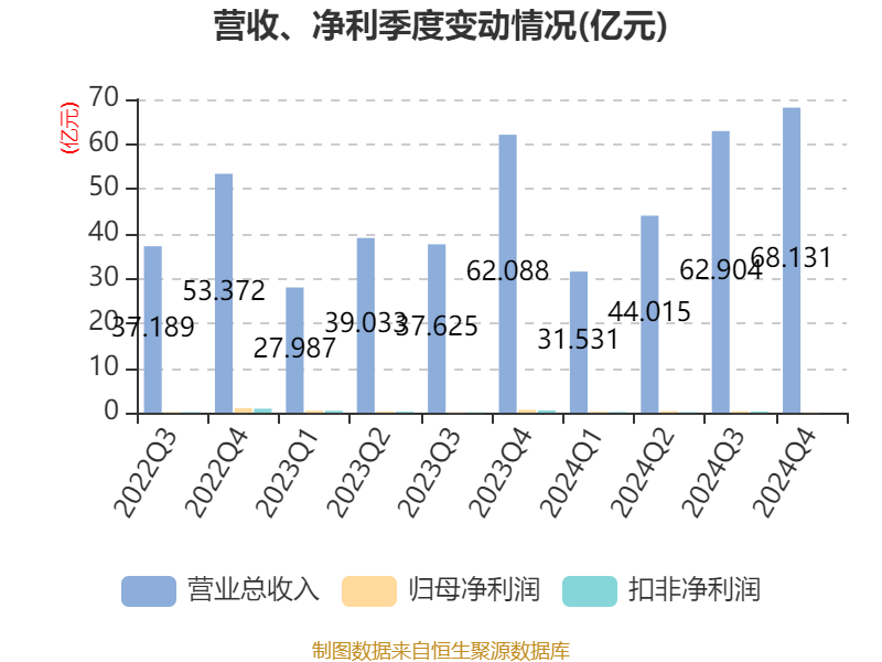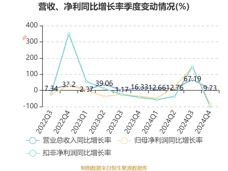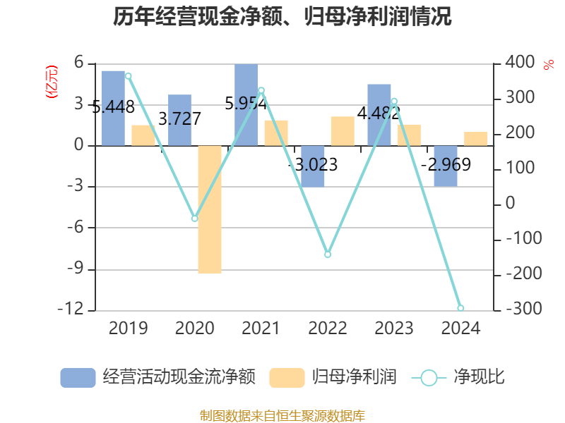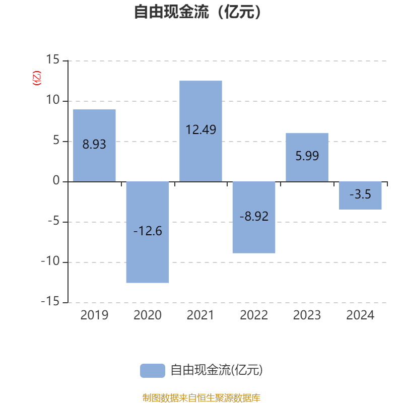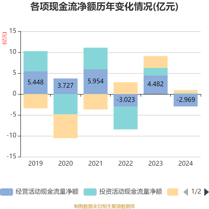 截至2024年,公司经营活动现金流净额为-2.97亿元,同比减少7.45亿元;筹资活动现金流净额7308.72万元,同比减少2.09亿元;投资活动现金流净额2135.28万元,上年同期为1.79亿元。