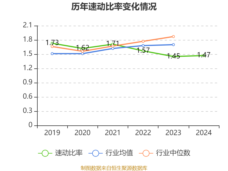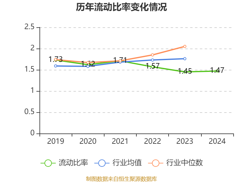 2024年,公司流动比率为1.47,速动比率为1.47。