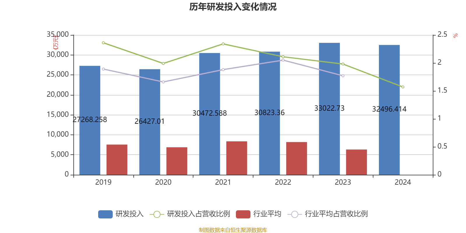 2024年全年,公司研发投入金额为3.25亿元,同比下降1.59%;研发投入占营业收入比例为1.57%,相比上年同期下降0.41个百分点。此外,公司全年研发投入资本化率为0%。