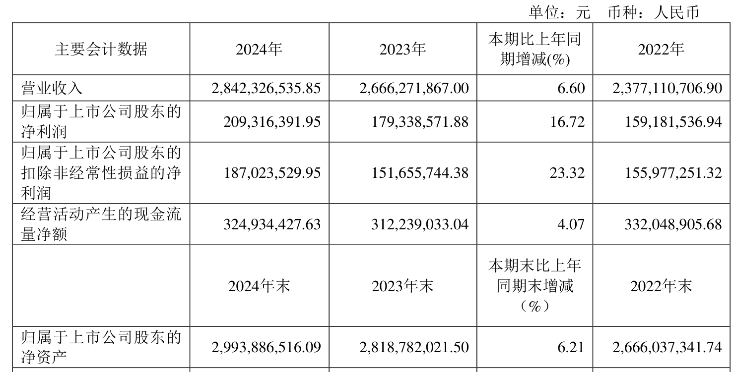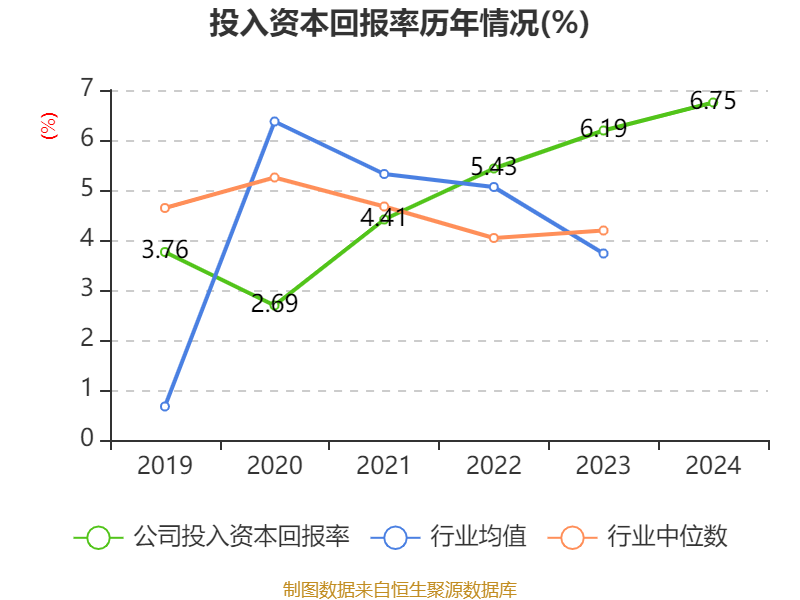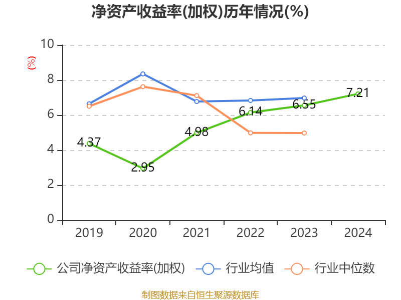 数据显示,2024年公司加权平均净资产收益率为7.21%,较上年同期上升0.66个百分点。公司2024年投入资本回报率为6.75%,较上年同期上升0.56个百分点。