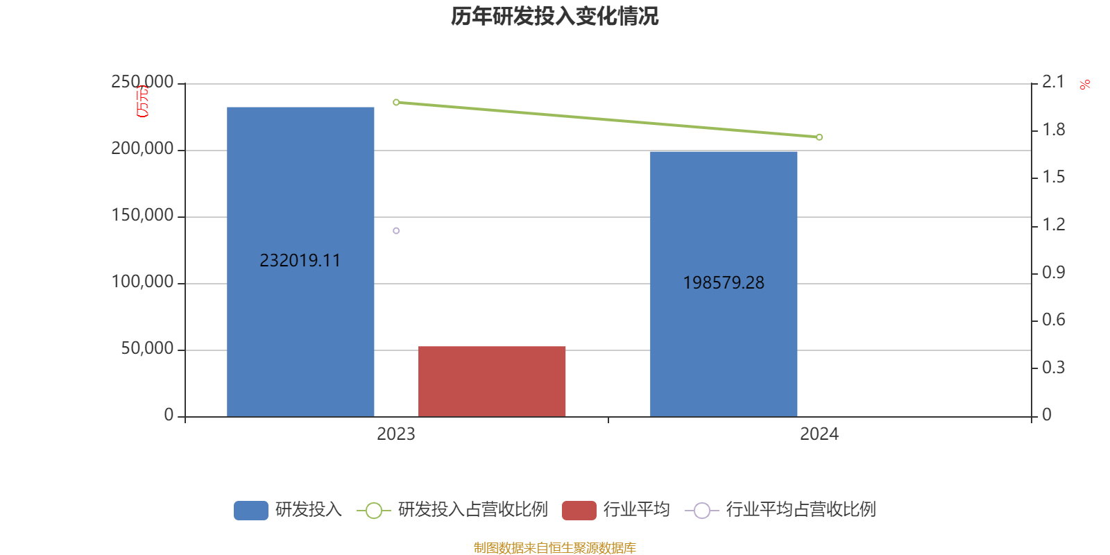 2024年全年,公司研发投入金额为19.86亿元,同比下降14.41%;研发投入占营业收入比例为1.76%,相比上年同期下降0.22个百分点。