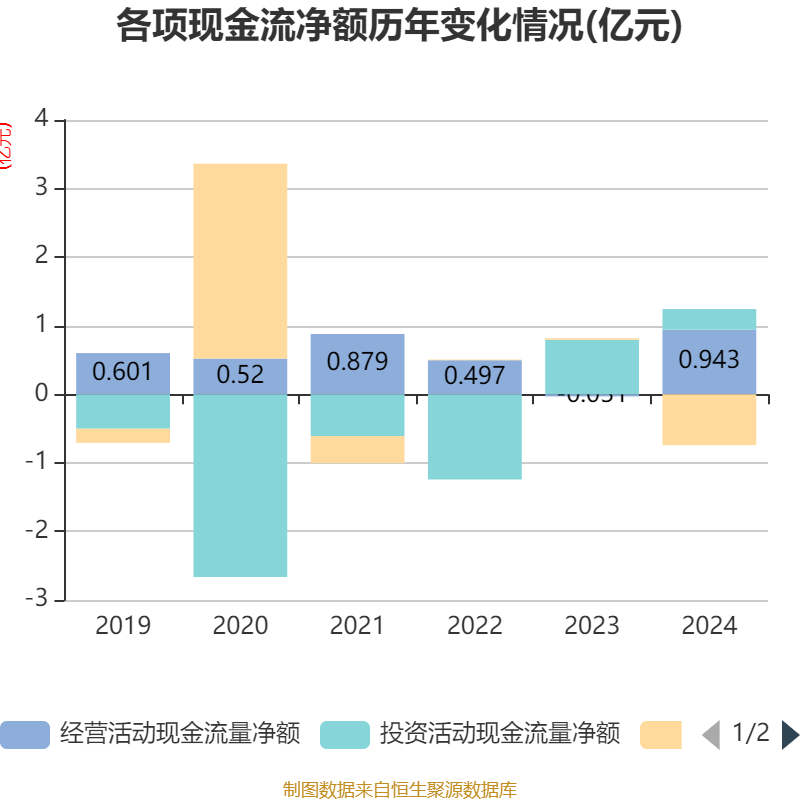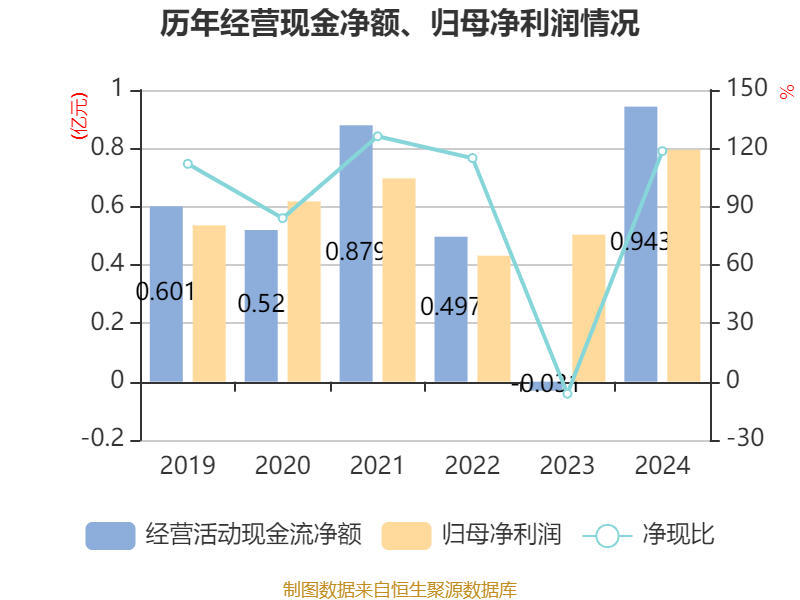 截至2024年,公司经营活动现金流净额为9429.48万元,同比增加9741.43万元;筹资活动现金流净额-7406.7万元,同比减少7623.81万元;投资活动现金流净额2999.86万元,上年同期为7946.69万元。