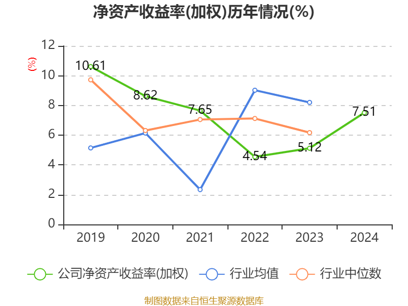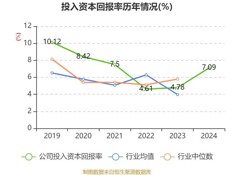 数据显示,2024年公司加权平均净资产收益率为7.51%,较上年同期上升2.39个百分点。公司2024年投入资本回报率为7.09%,较上年同期上升2.31个百分点。