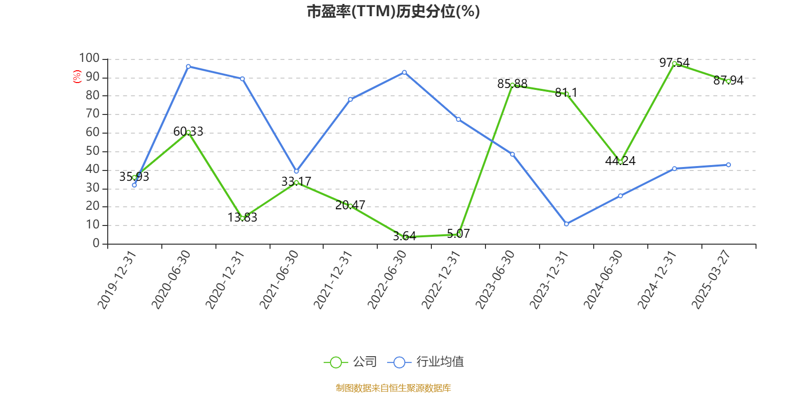 市盈率、市净率为负时,不显示当期分位数,会导致折线图中断。