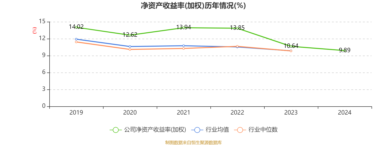 数据显示,2024年公司加权平均净资产收益率为9.89%,较上年同期下降0.75个百分点。
