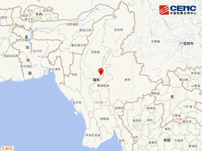 中国地震台网自动测定:03月28日14时20分在缅甸附近(北纬22.05度,东经95.84度)发生7.7级左右地震,最终结果以正式速报为准。