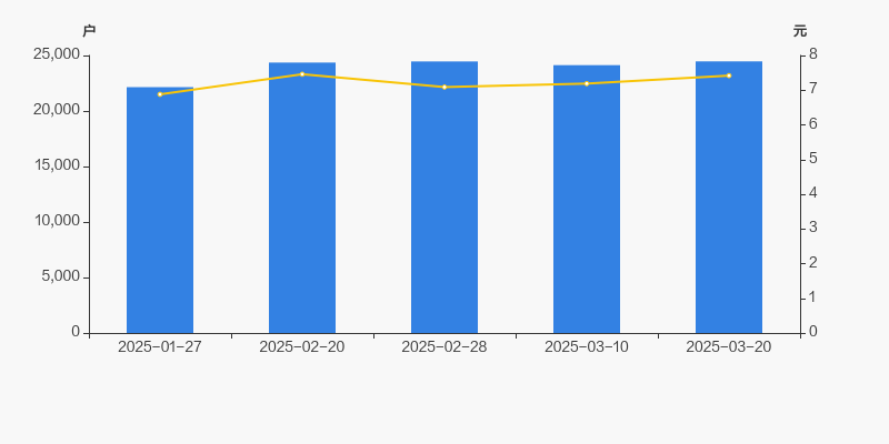 2025年1月27日至今,公司股东户数显著增长,区间涨幅为10.48%。2025年1月27日至2025年3月20日区间股价上涨7.85%。