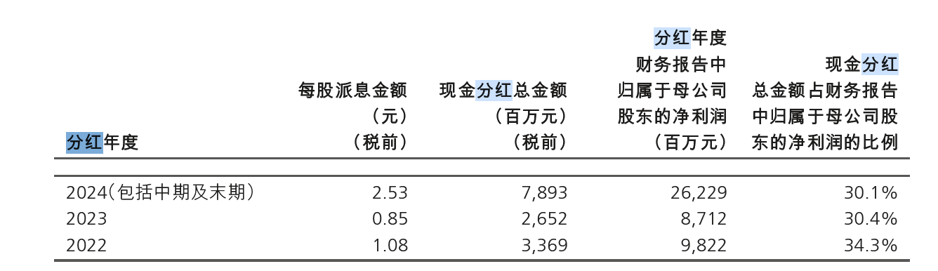 同时,2024年公司首次开展中期分红16.85亿元,全年拟合计派发分红78.93亿元,占归母净利润的比例为30.1%。