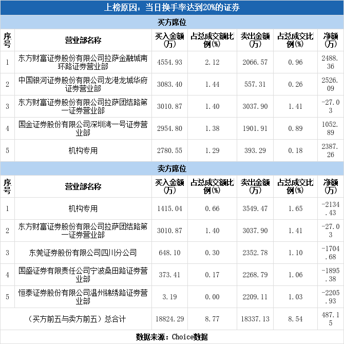 深交所2025年3月28日交易公开信息显示,巨力索具因属于当日换手率达到20%的证券而登上龙虎榜。巨力索具当日报收6.65元,涨跌幅为5.89%,换手率34.48%,振幅13.85%,成交额21.48亿元。