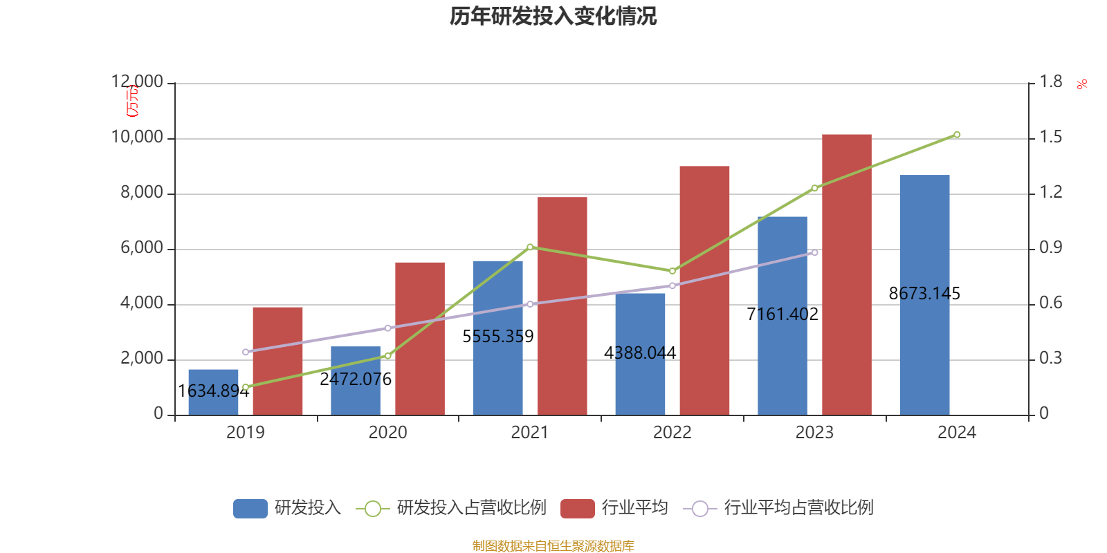 2024年全年,公司研发投入金额为8673.14万元,同比增长21.11%;研发投入占营业收入比例为1.52%,相比上年同期上升0.29个百分点。此外,公司全年研发投入资本化率为7.79%。