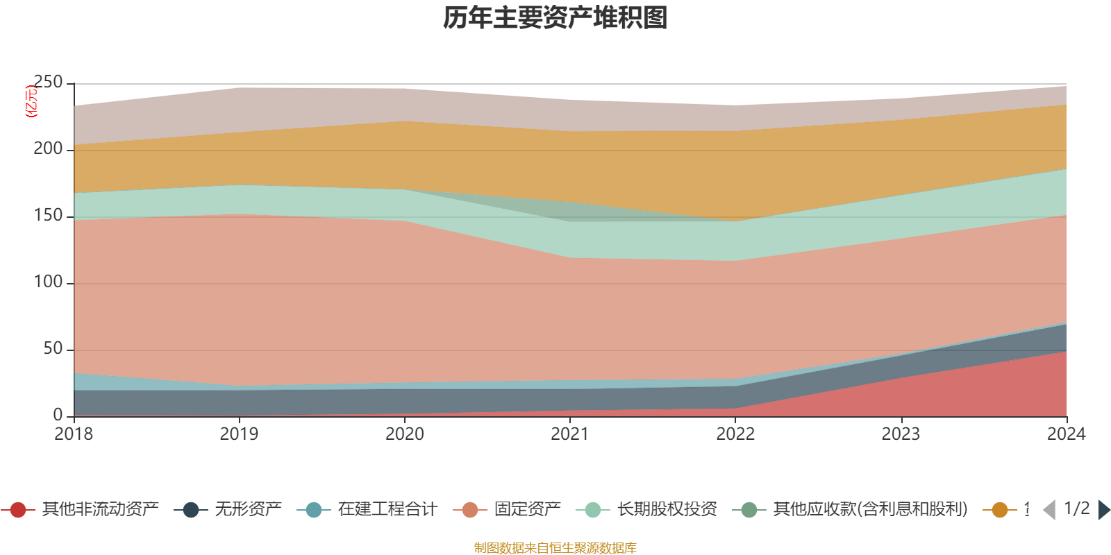 资产重大变化方面,截至2024年末,公司其他非流动资产较上年末增加68.43%,占公司总资产比重上升7.5个百分点;货币资金较上年末减少14.69%,占公司总资产比重下降4.21个百分点;固定资产较上年末减少6.74%,占公司总资产比重下降3.72个百分点;无形资产较上年末增加22.14%,占公司总资产比重上升1.23个百分点。