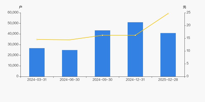 2024年3月31日至今,公司股东户数显著大幅增长,区间涨幅达53.23%。2024年3月31日至2025年2月28日区间股价上涨70.00%。