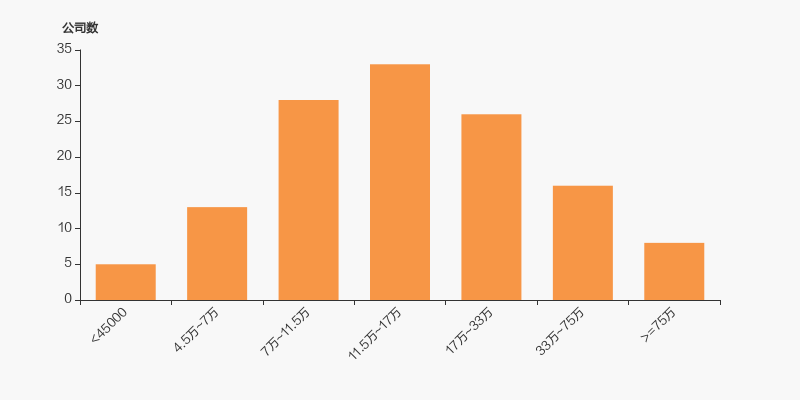 武汉凡谷股东户数高于行业平均水平。根据Choice数据,截至2025年2月28日通信行业上市公司平均股东户数为5.34万户。其中,公司股东户数处于2万~4.5万区间占比最高,为29.46%。