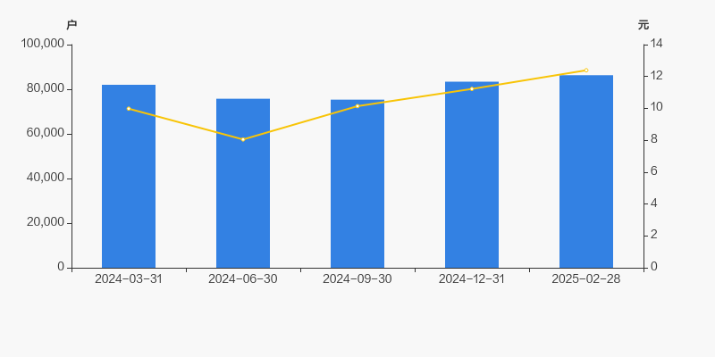 截至2025年2月28日,公司最新总股本为6.83亿股,其中流通股本为5.09亿股。户均持有流通股数量由上期的6106股下降至5901股,户均流通市值7.31万元。