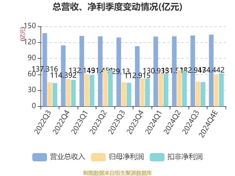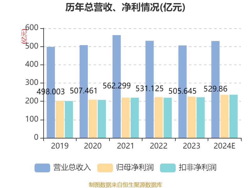据公告,2024年,公司坚持战略引领,加快转型发展和结构调整,提高服务实体经济质效,深入推进数字化建设,完善风险管理体系,实现良好的经营业绩,发展质量稳步提升。全年实现营业收入529.86亿元,同比增长4.79%,增速较前三季度提高4.11个百分点;实现归属于母公司股东的净利润235.60亿元,同比增长4.50%,增速较前三季度提高3.10个百分点。