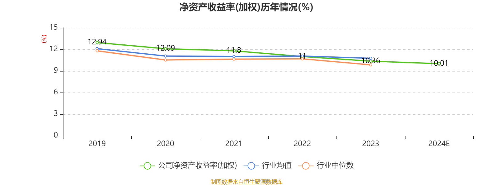 数据显示,2024年公司加权平均净资产收益率为10.01%,较上年同期下降0.35个百分点。