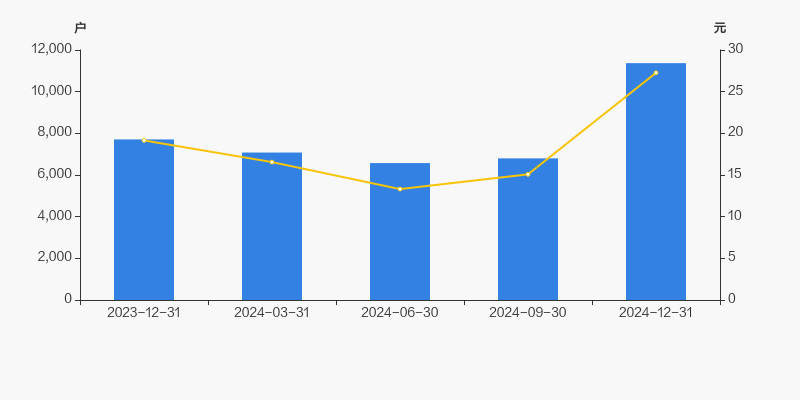 2023年12月31日至今,公司股东户数显著增长,区间涨幅为47.50%。2023年12月31日至2024年12月31日区间股价上涨42.37%。