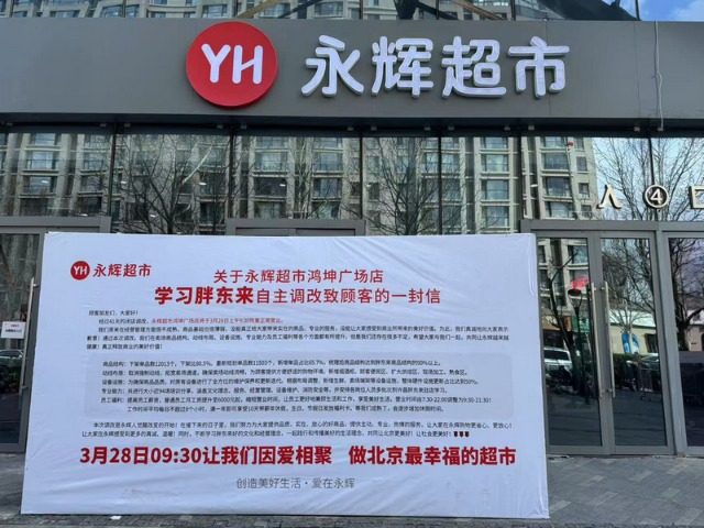 永辉超市北京大兴鸿坤广场店外围挡蓝鲸新闻记者王涵艺摄