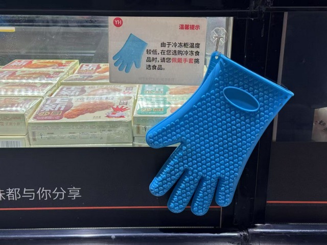 永辉超市冻品柜配备的防冻手套蓝鲸新闻记者王涵艺摄