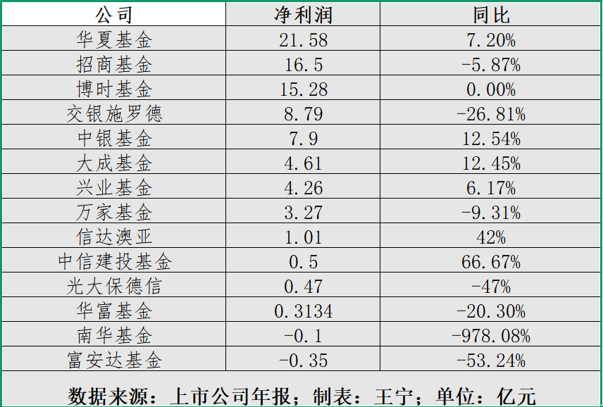 在净利润方面,华夏基金管理有限公司(以下简称“华夏基金”)、招商基金管理有限公司(以下简称“招商基金”)和博时基金管理有限公司(以下简称“博时基金”)等头部公司表现尤为突出,净利润均超过了15亿元。其中,华夏基金以21.58亿元的净利润暂时排名首位,招商基金和博时基金则分别以16.5亿元和15.28亿元紧随其后。这些头部公司的优异表现,不仅得益于较高管理规模和强大投研能力的支撑,更在于其不断优化产品布局和持续拓展销售渠道的努力。