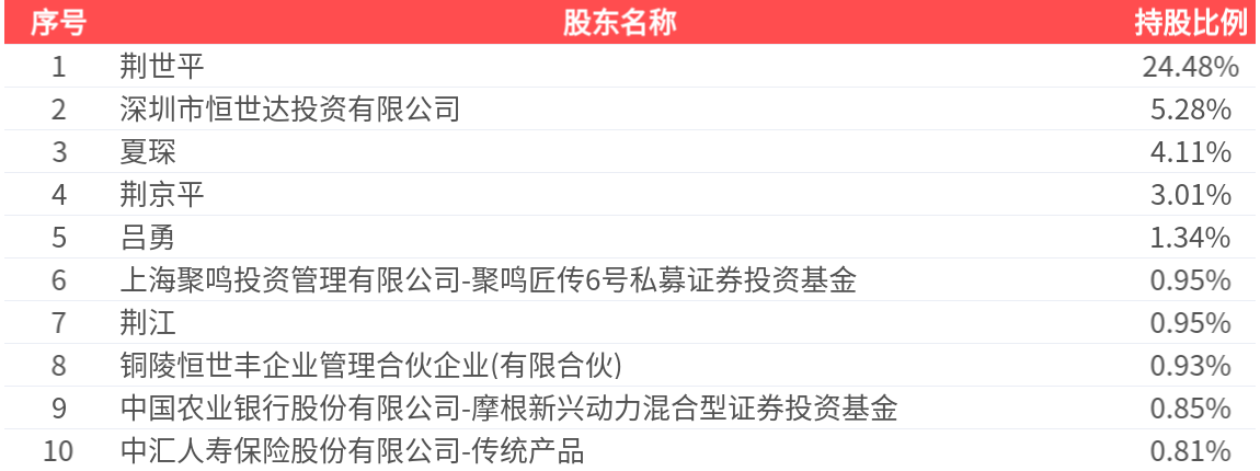 公司股东户数为1.85万户,前十大股东持股数量为1.09亿股,占总股本比例为42.71%,前十大股东持股情况如下: