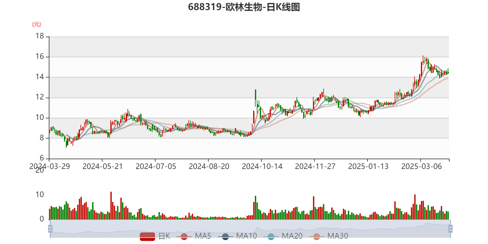 以3月28日收盘价计算,欧林生物目前市盈率(TTM)约为282.39倍,市净率(LF)约6.34倍,市销率(TTM)约9.95倍。