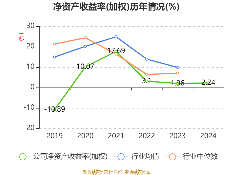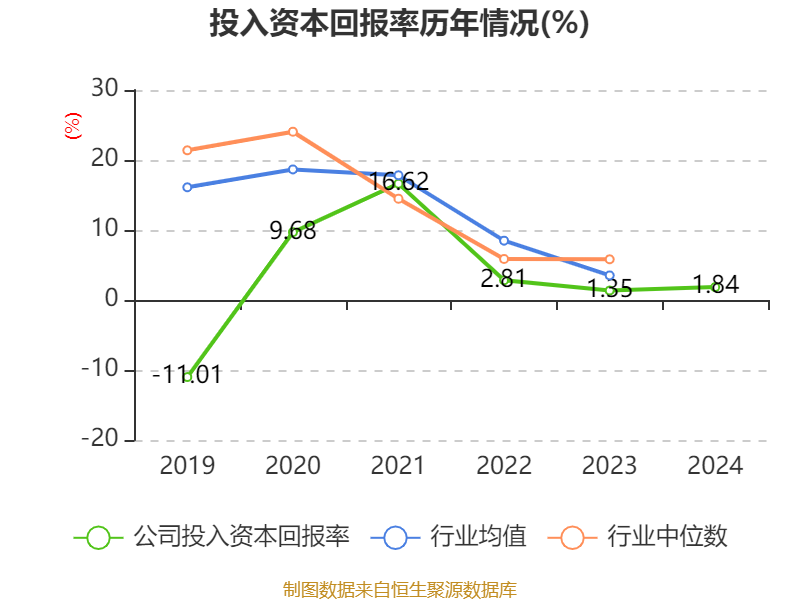 数据显示,2024年公司加权平均净资产收益率为2.24%,较上年同期上升0.28个百分点。公司2024年投入资本回报率为1.84%,较上年同期上升0.49个百分点。