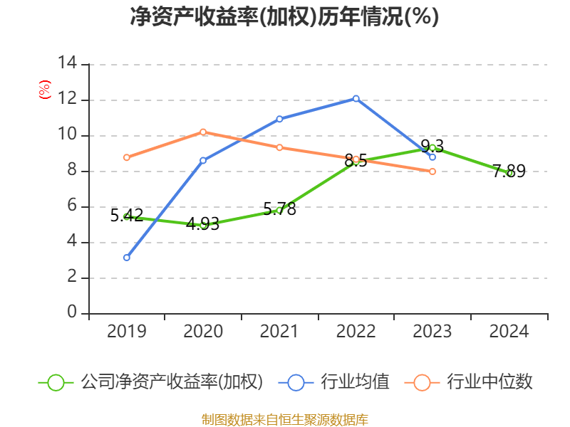 数据显示,2024年公司加权平均净资产收益率为7.89%,较上年同期下降1.41个百分点。公司2024年投入资本回报率为14.88%,较上年同期下降0.75个百分点。