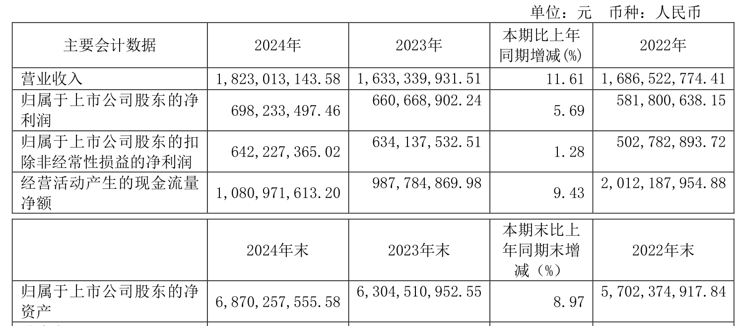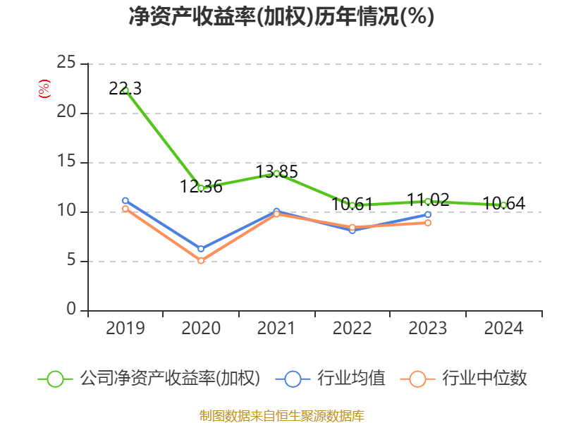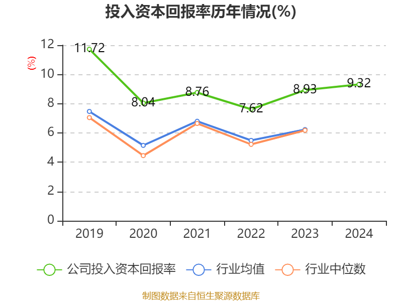 数据显示,2024年公司加权平均净资产收益率为10.64%,较上年同期下降0.38个百分点。公司2024年投入资本回报率为9.32%,较上年同期上升0.39个百分点。
