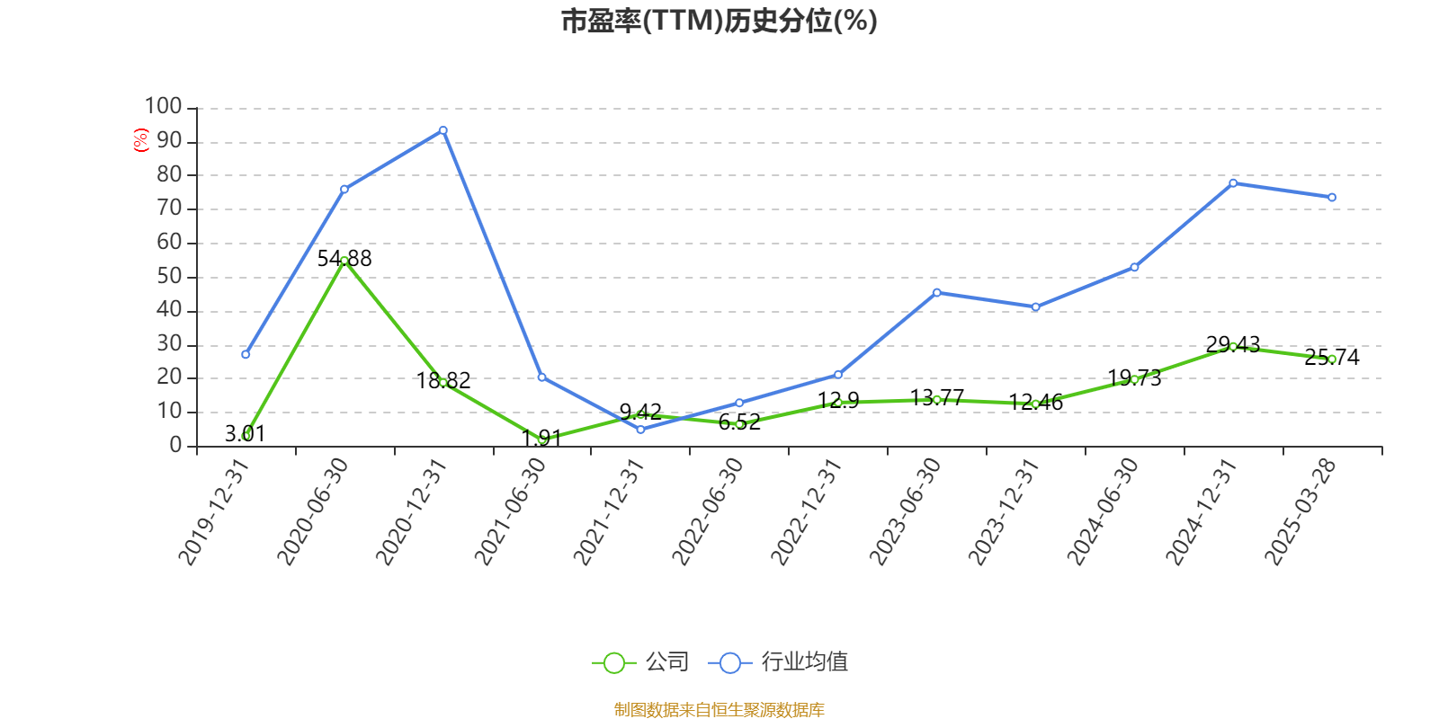 市盈率、市净率为负时,不显示当期分位数,会导致折线图中断。