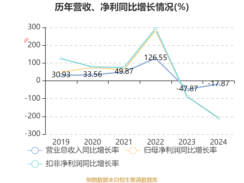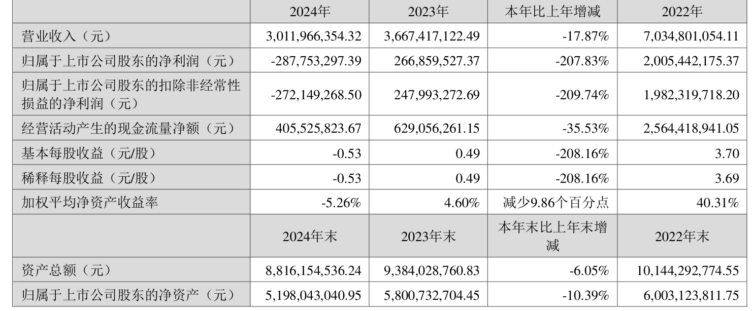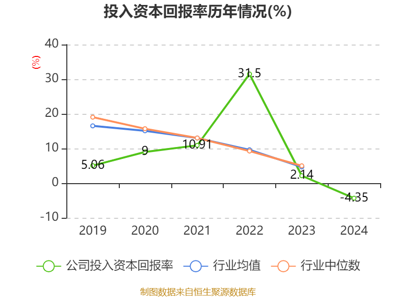 数据显示,2024年公司加权平均净资产收益率为-5.26%,较上年同期下降9.86个百分点。公司2024年投入资本回报率为-4.35%,较上年同期下降6.49个百分点。
