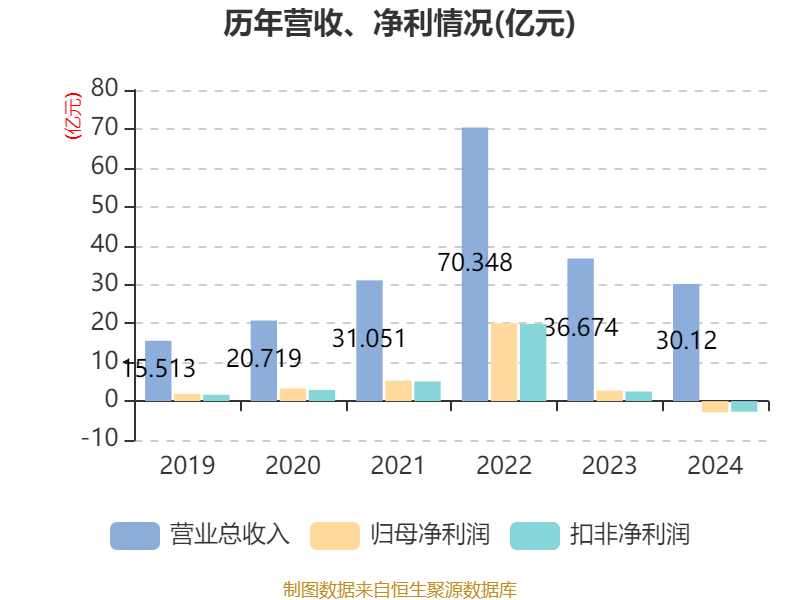中证智能财讯博腾股份(300363)3月29日披露2024年年度报告。2024年,公司实现营业总收入30.12亿元,同比下降17.87%;归母净利润亏损2.88亿元,上年同期盈利2.67亿元;扣非净利润亏损2.72亿元,上年同期盈利2.48亿元;经营活动产生的现金流量净额为4.06亿元,同比下降35.53%;报告期内,博腾股份基本每股收益为-0.53元,加权平均净资产收益率为-5.26%。