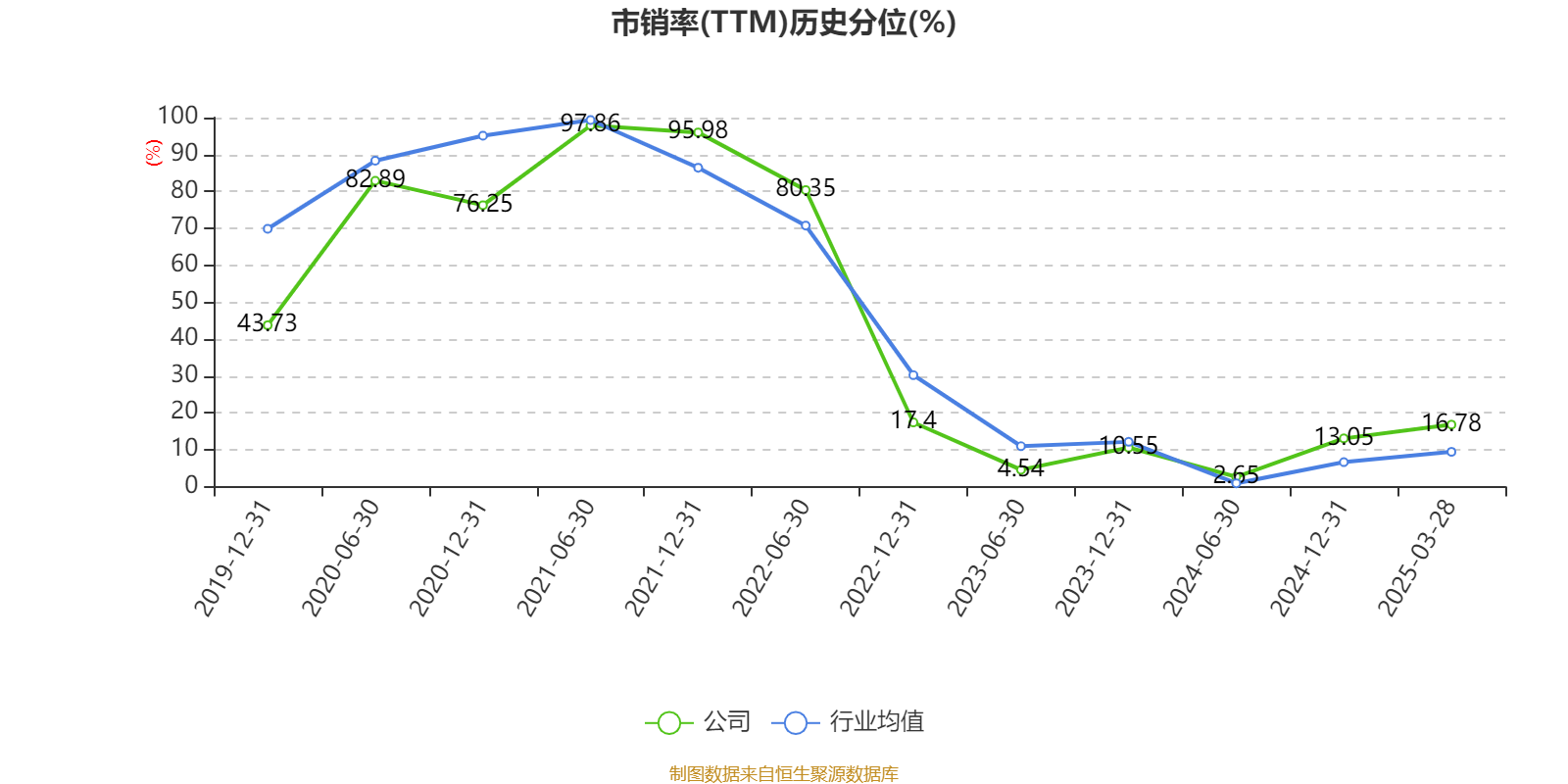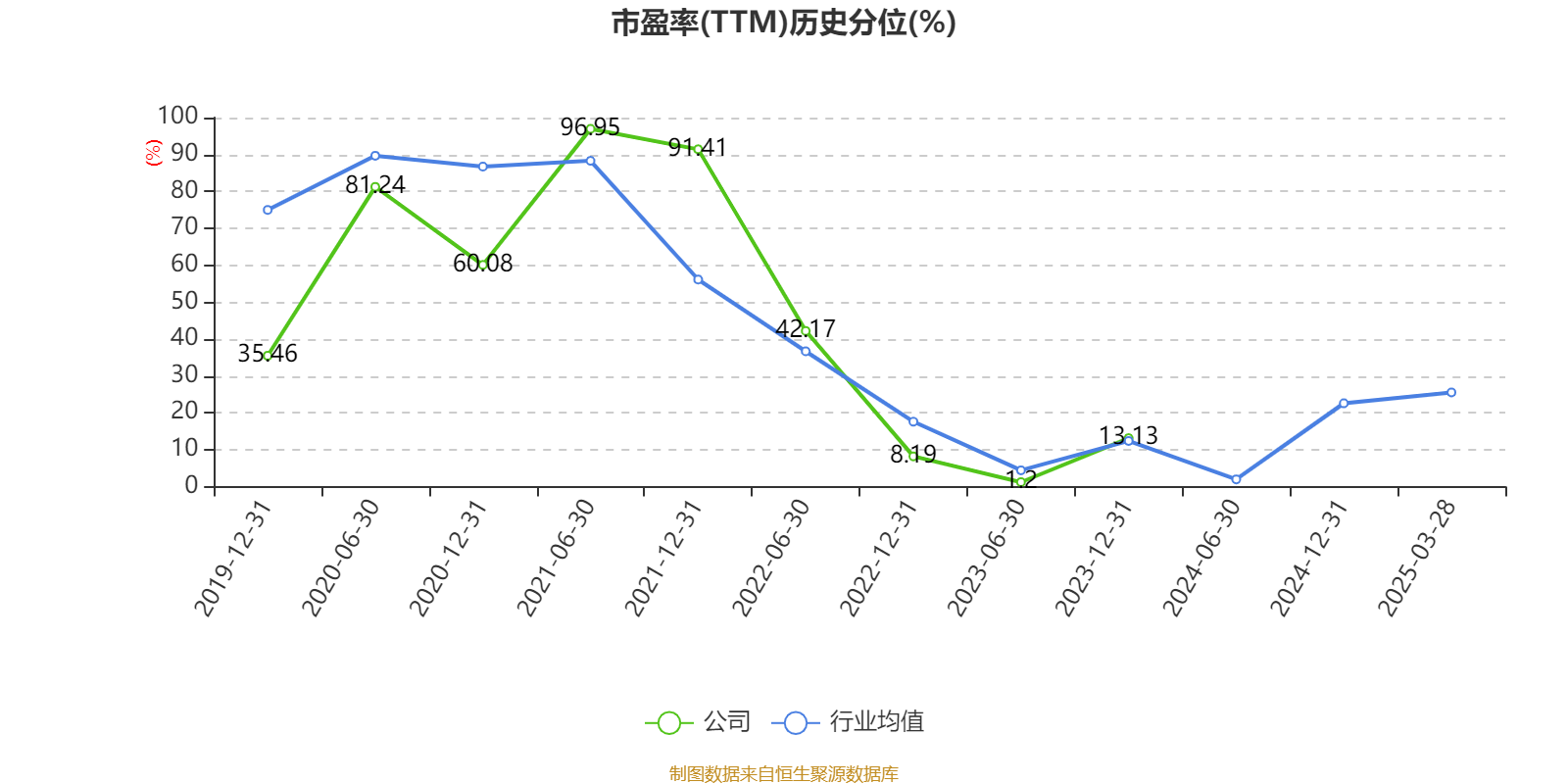 市盈率、市净率为负时,不显示当期分位数,会导致折线图中断。