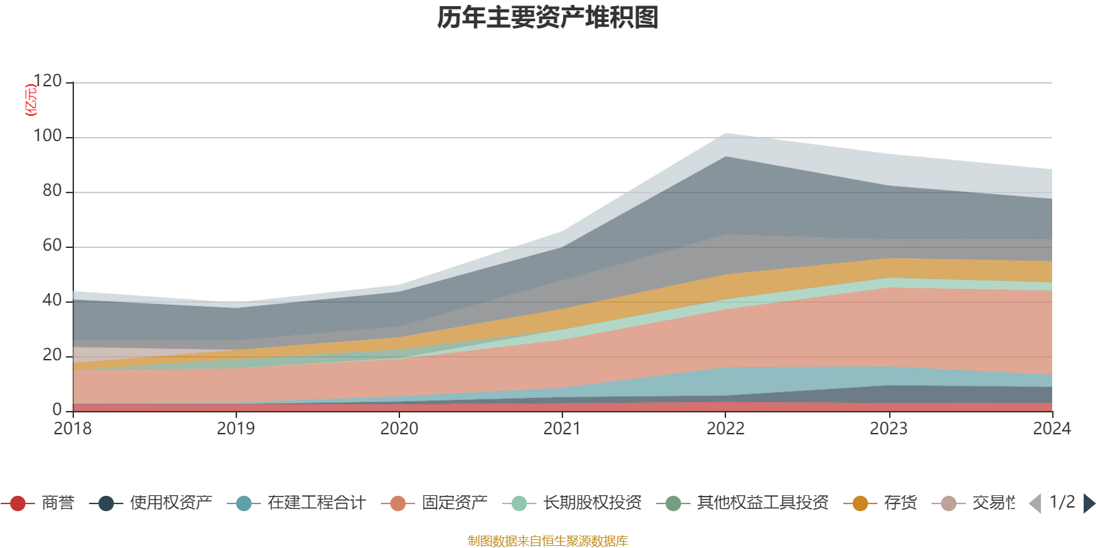 资产重大变化方面,截至2024年末,公司货币资金较上年末减少25.02%,占公司总资产比重下降4.23个百分点;固定资产较上年末增加6.9%,占公司总资产比重上升4.22个百分点;在建工程合计较上年末减少36.93%,占公司总资产比重下降2.43个百分点;应收票据及应收账款较上年末增加17.73%,占公司总资产比重上升1.82个百分点。