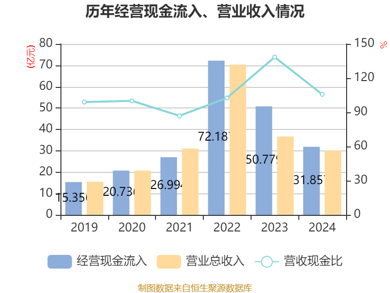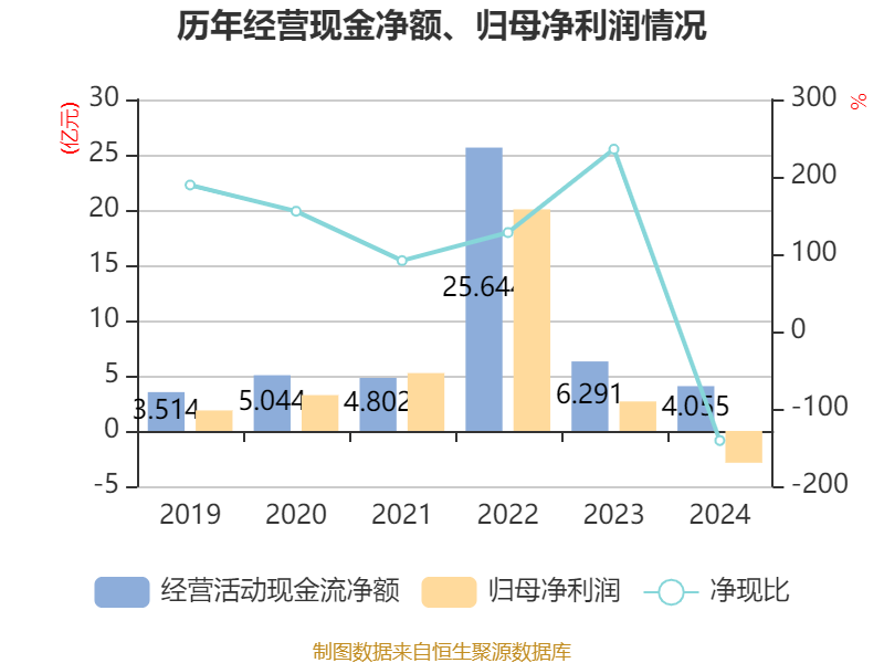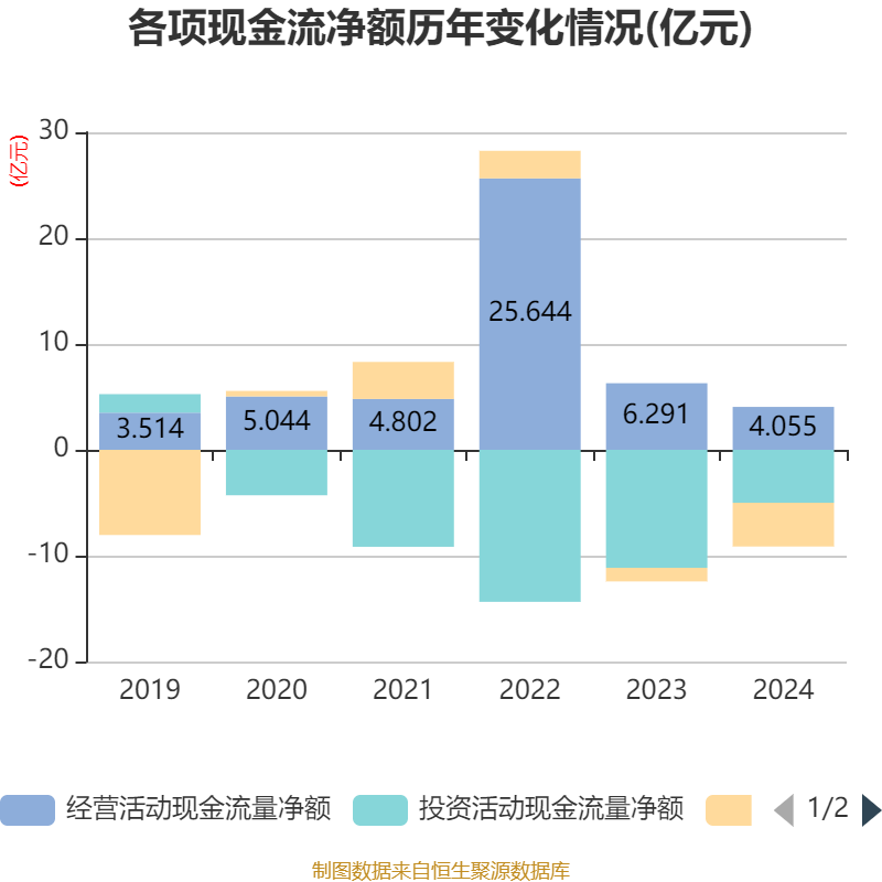 截至2024年,公司经营活动现金流净额为4.06亿元,同比下降35.53%;筹资活动现金流净额-4.14亿元,同比减少2.85亿元;投资活动现金流净额-5亿元,上年同期为-11.15亿元。