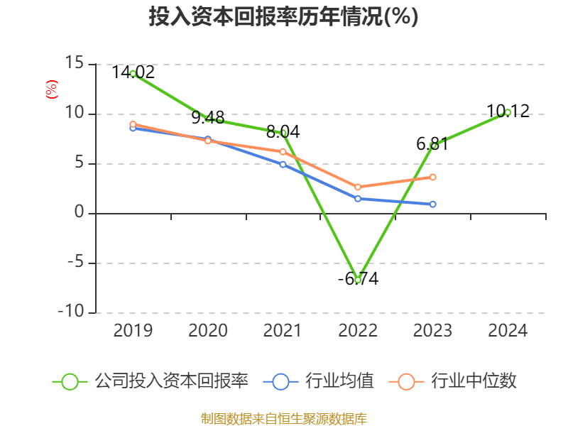 数据显示,2024年公司加权平均净资产收益率为11.81%,较上年同期上升3.99个百分点。公司2024年投入资本回报率为10.12%,较上年同期上升3.31个百分点。