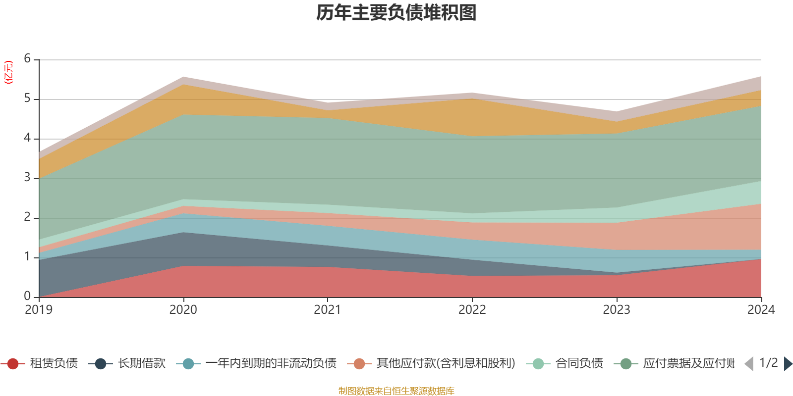 负债重大变化方面,截至2024年末,公司一年内到期的非流动负债较上年末减少58.61%,占公司总资产比重下降3.13个百分点;其他应付款(含利息和股利)较上年末增加69.24%,占公司总资产比重上升2.96个百分点;租赁负债较上年末增加73.99%,占公司总资产比重上升2.58个百分点;应付票据及应付账款较上年末增加1.49%,占公司总资产比重下降1.61个百分点。
