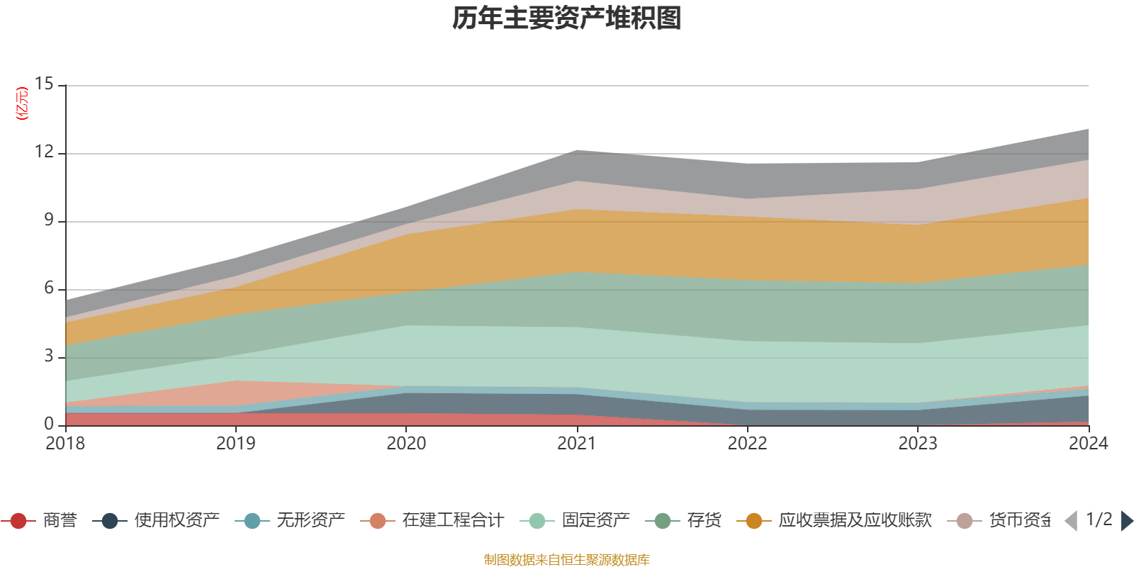资产重大变化方面,截至2024年末,公司使用权资产较上年末增加72.18%,占公司总资产比重上升3.03个百分点;存货较上年末增加0.7%,占公司总资产比重下降2.44个百分点;固定资产较上年末增加1.32%,占公司总资产比重下降2.29个百分点;商誉占公司总资产的1.19%,上年末为0。