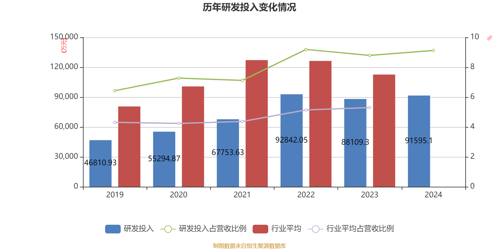 2024年全年,公司研发投入金额为9.16亿元,同比增长3.96%;研发投入占营业收入比例为9.12%,相比上年同期上升0.33个百分点。此外,公司全年研发投入资本化率为0.27%。
