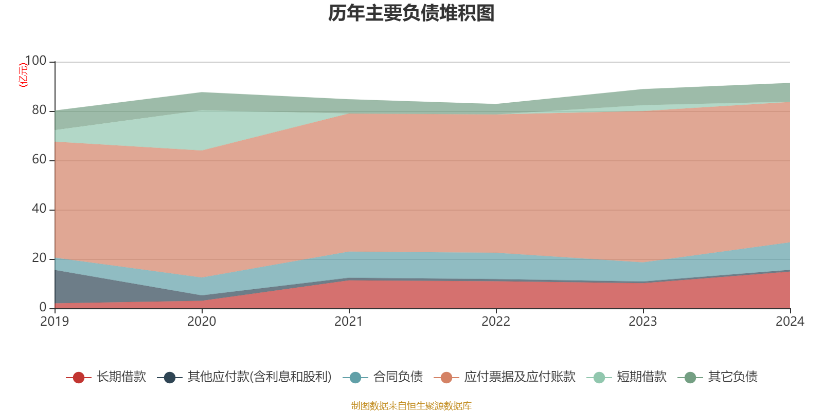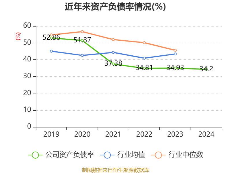 负债重大变化方面,截至2024年末,公司应付票据及应付账款较上年末减少7.26%,占公司总资产比重下降2.81个百分点;长期借款较上年末增加46.68%,占公司总资产比重上升1.58个百分点;合同负债较上年末增加44.29%,占公司总资产比重上升1.14个百分点;短期借款较上年末减少94.91%,占公司总资产比重下降0.9个百分点。