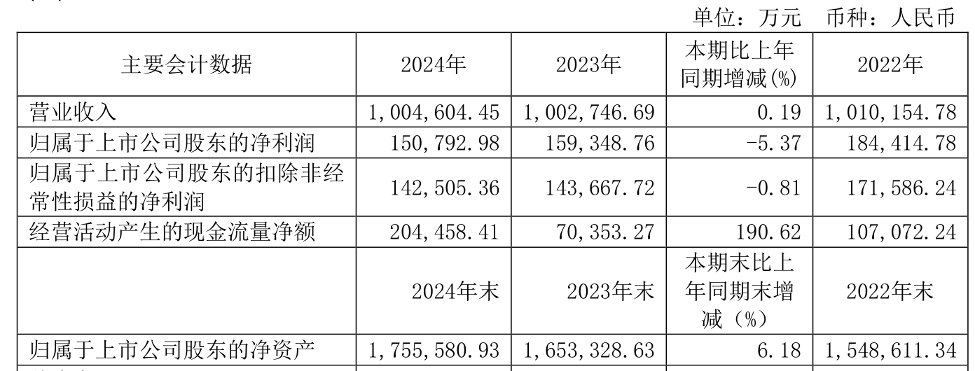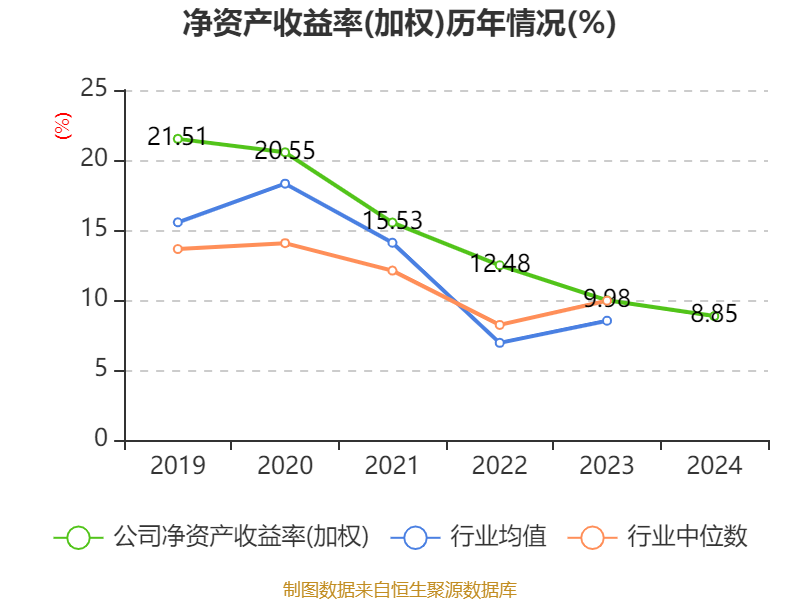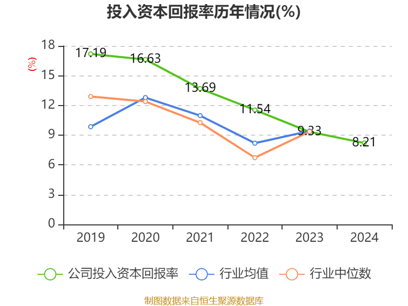 数据显示,2024年公司加权平均净资产收益率为8.85%,较上年同期下降1.13个百分点。公司2024年投入资本回报率为8.21%,较上年同期下降1.12个百分点。