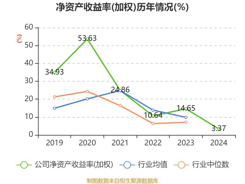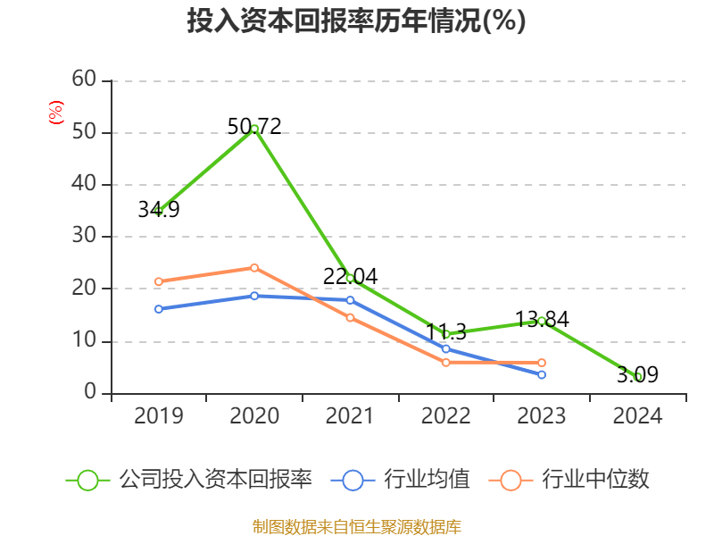 数据显示,2024年公司加权平均净资产收益率为3.37%,较上年同期下降11.28个百分点。公司2024年投入资本回报率为3.09%,较上年同期下降10.75个百分点。