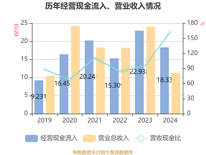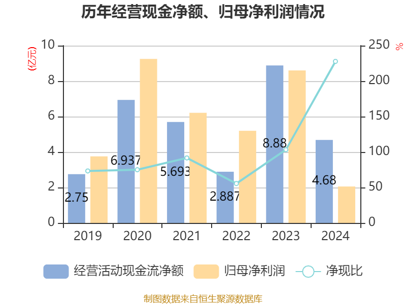 截至2024年,公司经营活动现金流净额为4.68亿元,同比下降47.29%;筹资活动现金流净额-4.25亿元,同比减少2.99亿元;投资活动现金流净额-6107.99万元,上年同期为-7.21亿元。