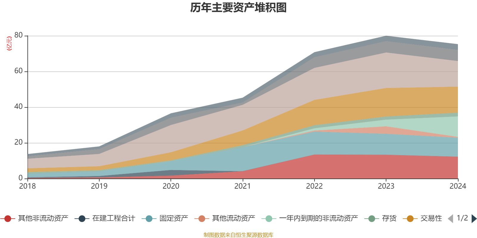 资产重大变化方面,截至2024年末,公司一年内到期的非流动资产较上年末增加206.7%,占公司总资产比重上升10.55个百分点;应收票据及应收账款较上年末减少27.78%,占公司总资产比重下降5.79个百分点;其他流动资产较上年末减少89.01%,占公司总资产比重下降4.64个百分点;交易性金融资产合计较上年末减少8.78%,占公司总资产比重下降0.61个百分点。
